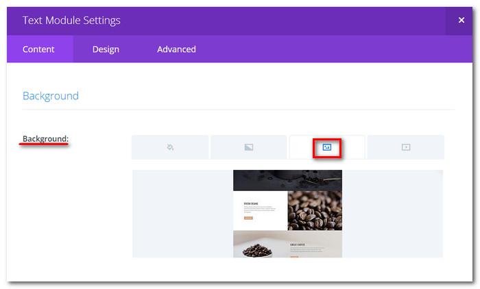 В настройках каждого из модулей, на вкладке Content в разделе Background добавляем наши скриншоты как фоновые изображения.