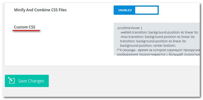 Теперь нужно добавить код CSS который и будет обеспечивать скроллирование скриншотов при наведении курсора.