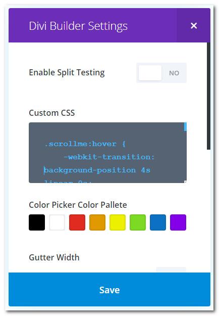 Для вставки необходимо перейти в настройки Divi Builder и в окно Custom CSS скопировать код. Не забываем нажать кнопку сохранения.